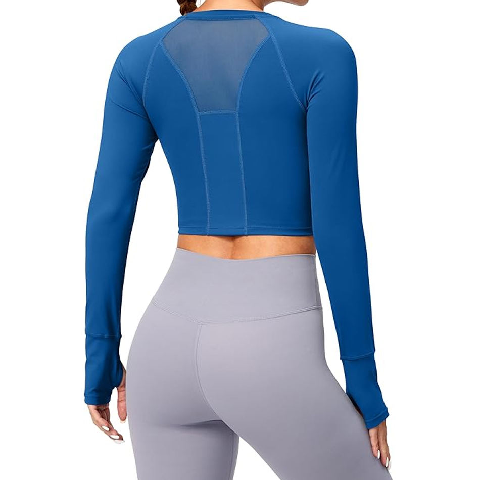 Top de compresión para mujer, Top corto de manga larga para Yoga personalizado, entrenamiento cómodo, malla de secado rápido, conjunto de pantalones de Yoga y Top corto