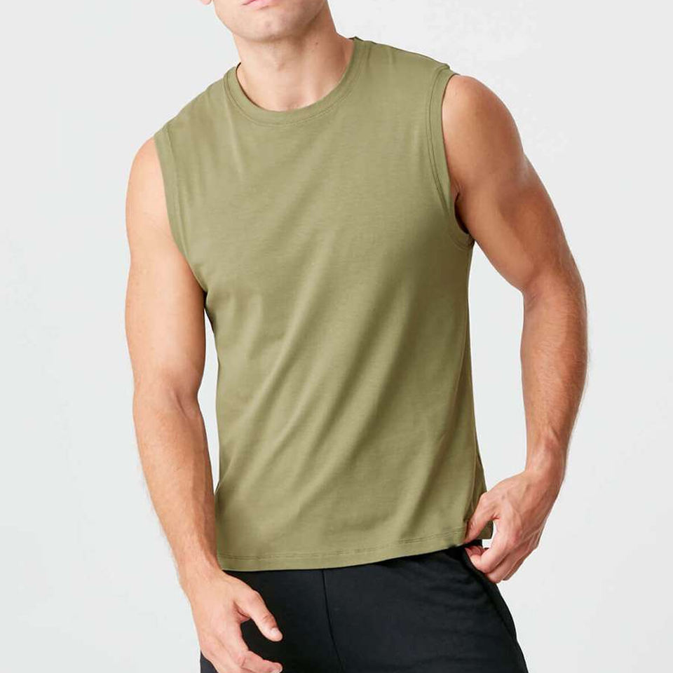 Camiseta sin mangas de algodón para hombre, ajuste compresivo, transpirable, ecológica, con tejido que absorbe la humedad, para correr, gimnasio, rendimiento, logotipo personalizado, base personalizada