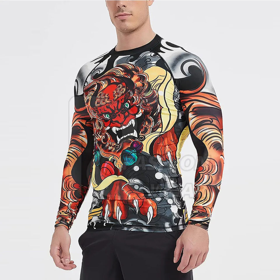 Camisetas de Compresión de Manga Larga, Rashguard Personalizado de BJJ, Rashguard Sublimado de Manga Larga para Hombre con Talla y Logotipo Personalizables