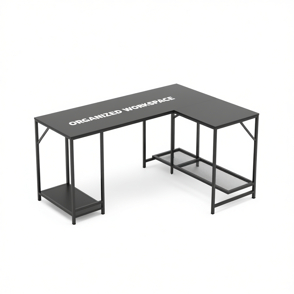 Escritorio de Computadora en Forma de L de Metal con Estante de Almacenamiento, Muebles para Oficina en Casa