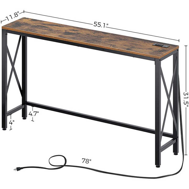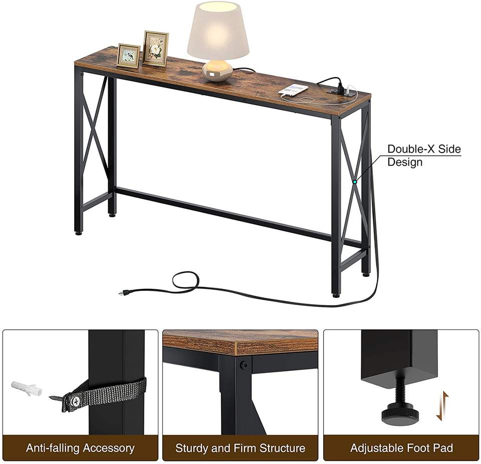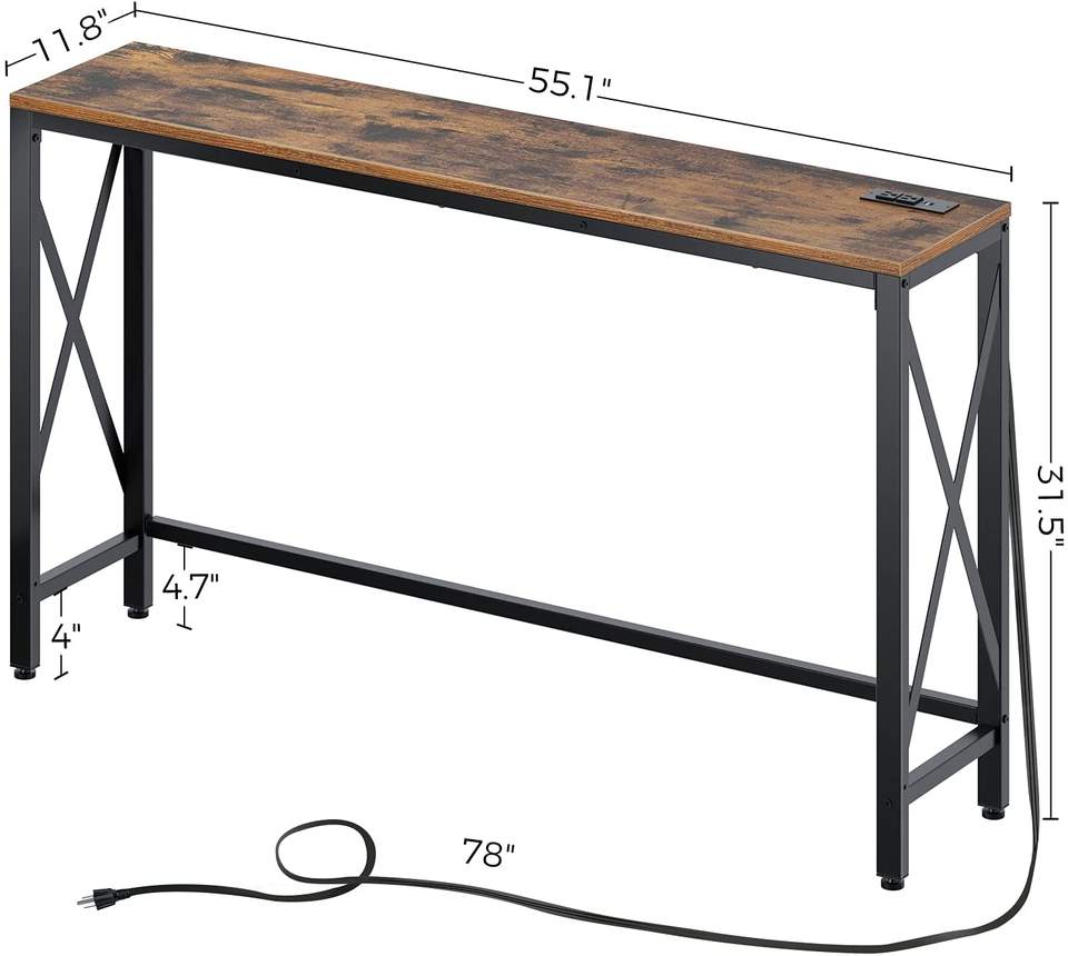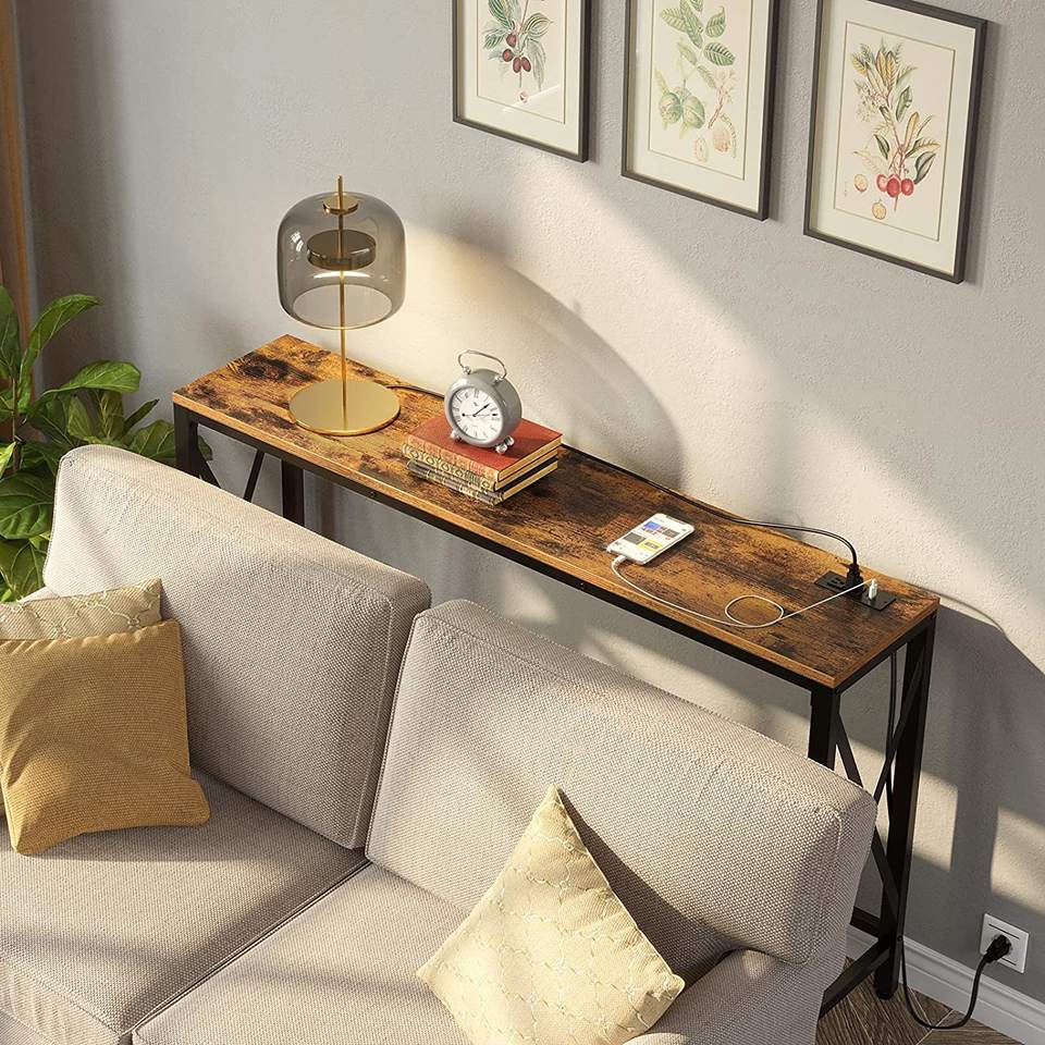 Escritorio para ordenador con estación de carga Escritorio multifuncional con toma de corriente Mesa de consola estrecha para sofá