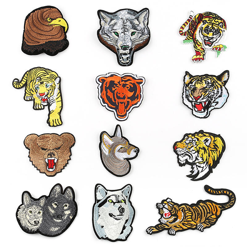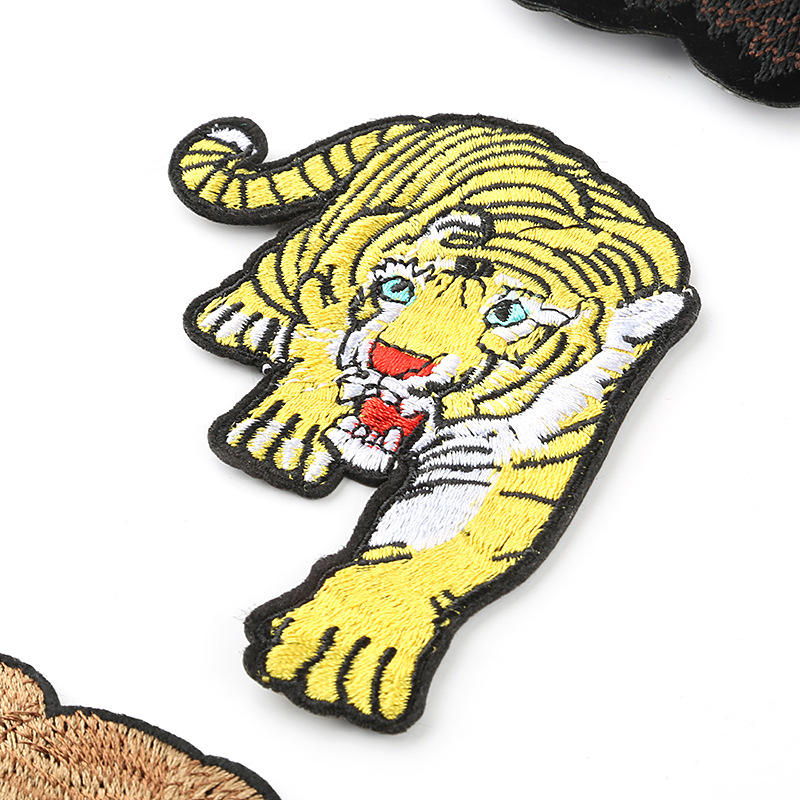 Parches Bordados por Computadora, Etiquetas de Flores, Accesorios de Ropa, Animales, Tigres, Perros, Pegatinas, Parches de Tela Bordados DIY