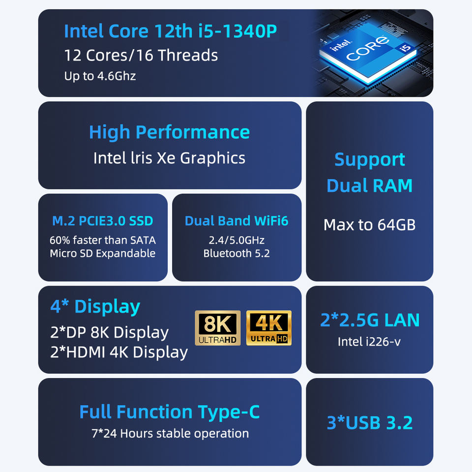 Ordenador Gamer Ddr5 16Gb Ram NVMe SSD 12Th 13th Gen Intel Core I5 1340P 1245U Box Win10 Win11 Gaming NUC Mini Pc