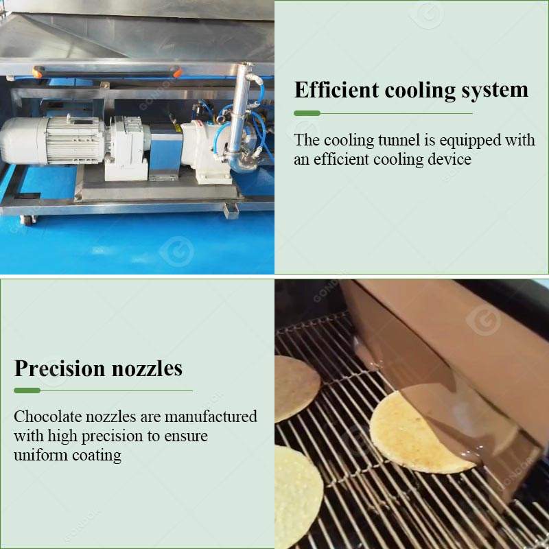 Máquina Automática para Recubrir Obleas con Línea Transportadora, Mesa 400, Recubrimiento de Chocolate Completamente Automático