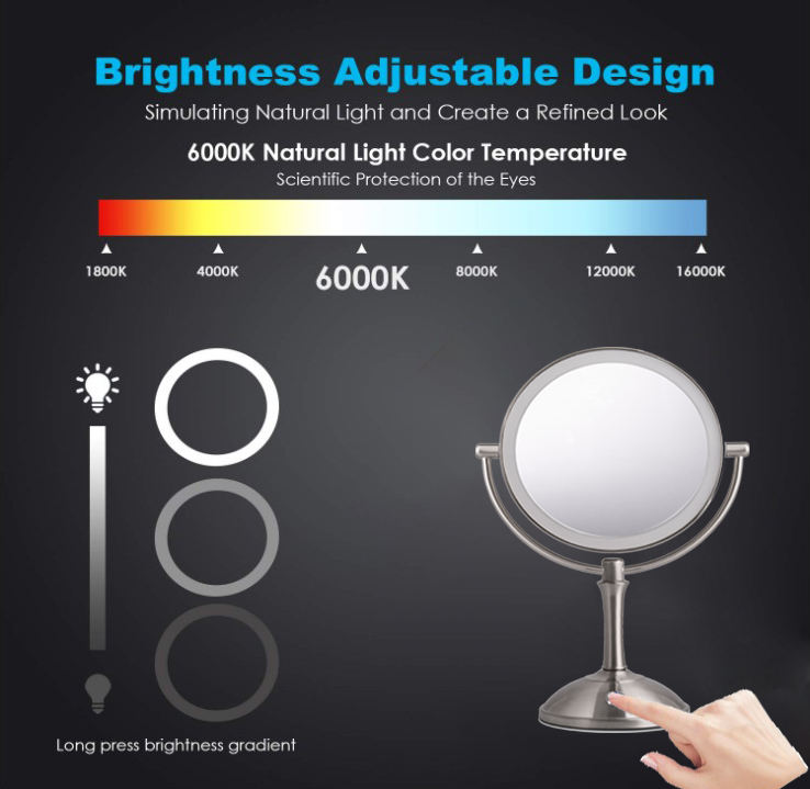 Espejo Cosmético Iluminado de Mesa con Forma Redonda y Dos Caras Estilo Conair