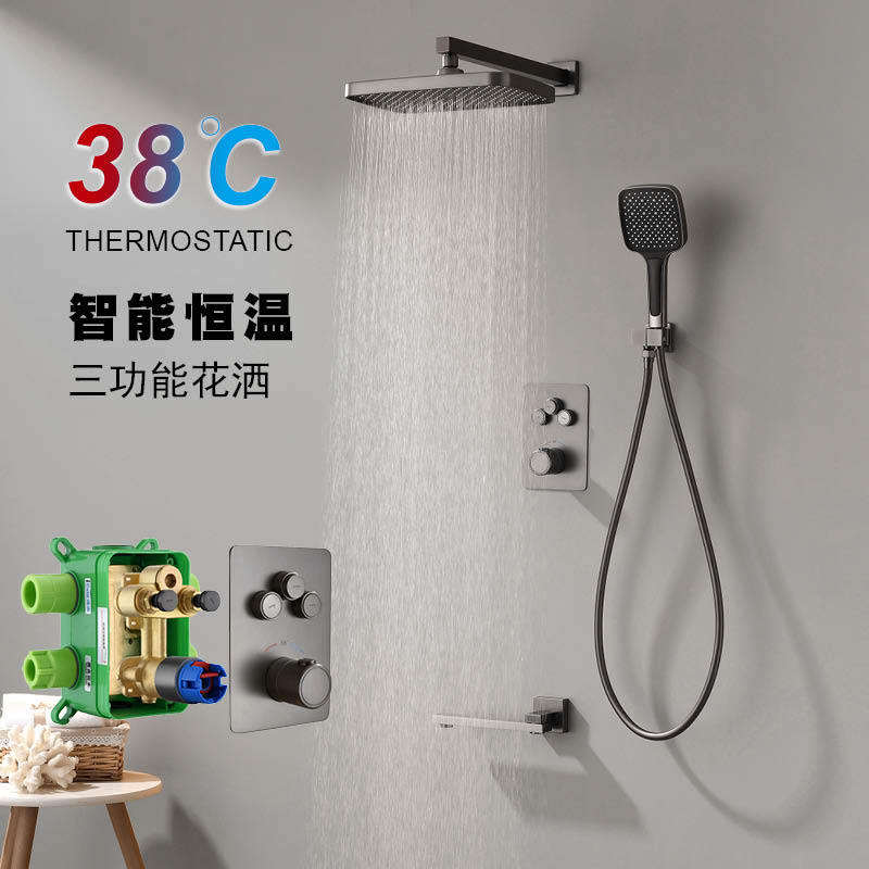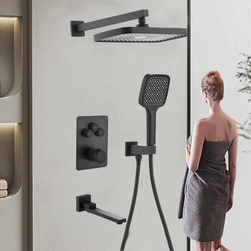 Conjunto de Ducha Empotrado Negro Rectangular Termostático con Tecnología Anticorrosión y Antidecoloración, Montado en Pared, Agua Fría y Caliente, con Rociador de Mano