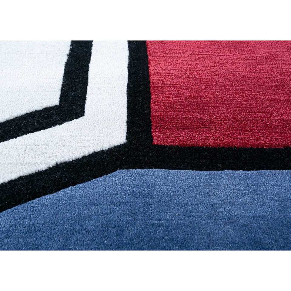 Alfombra Rectangular Concoction Blue de Lana y Viscosa Hecha a Mano, Diseño Abstracto, 9x12, para Sala de Estar o Pasillo, Grosor de 10 mm
