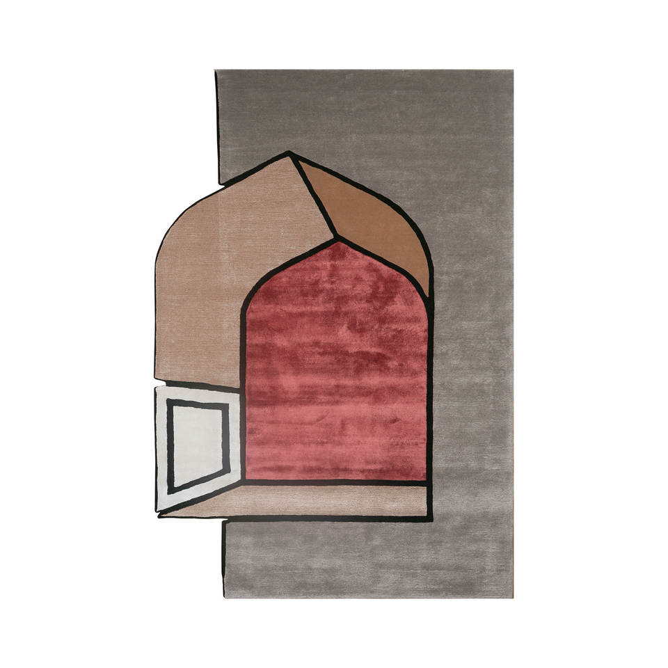 Alfombras de Lana y Viscosa Hechas a Mano con Diseño Abstracto en Gris y Negro para Sala de Estar, Pasillo, Rectangulares y Rayadas Top-157