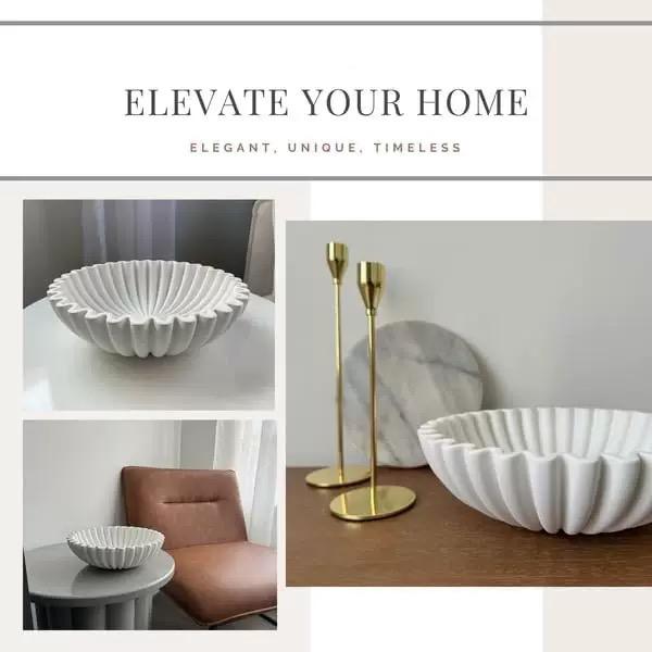 Cuenco decorativo de hormigón: Diseño de borde estriado, centro de mesa elegante para mesas de centro, estanterías y Decoración Para sala de estar