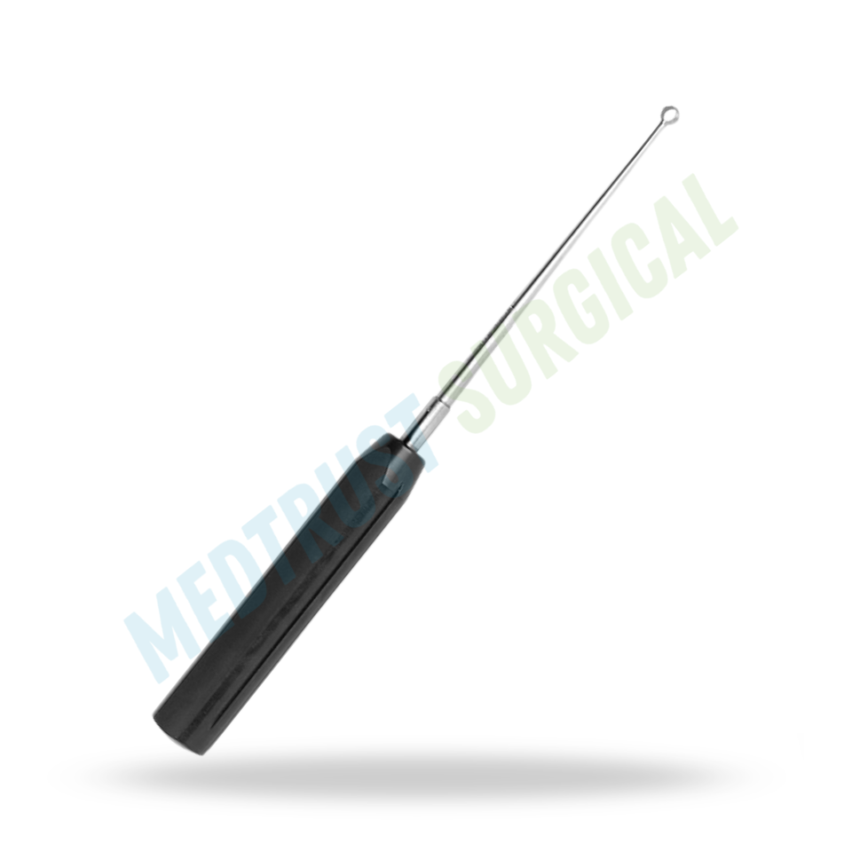 15 inch overall length with 7 inch ergonomic handle cone ring curette tip surgical grade stainless steel instrument available in straight angled and lateral angled patterns sizes 2 3 and 4 suitable for neurosurgery and spine surgery procedures