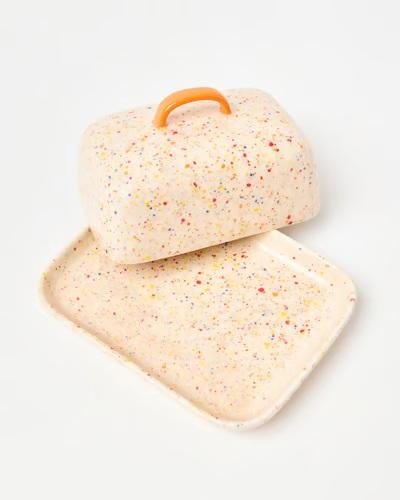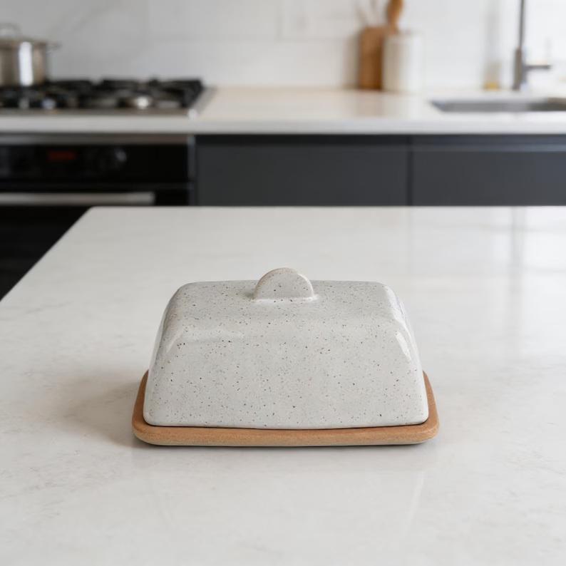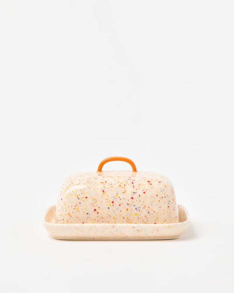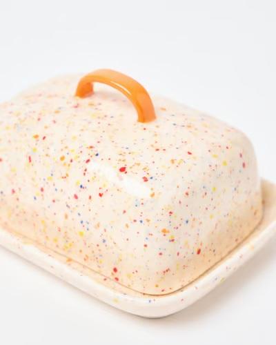 Recipiente para mantequilla Confetti Glaze con tapa y asa, bandeja compacta para servir, elegante contenedor de mantequilla para cocinas modernas