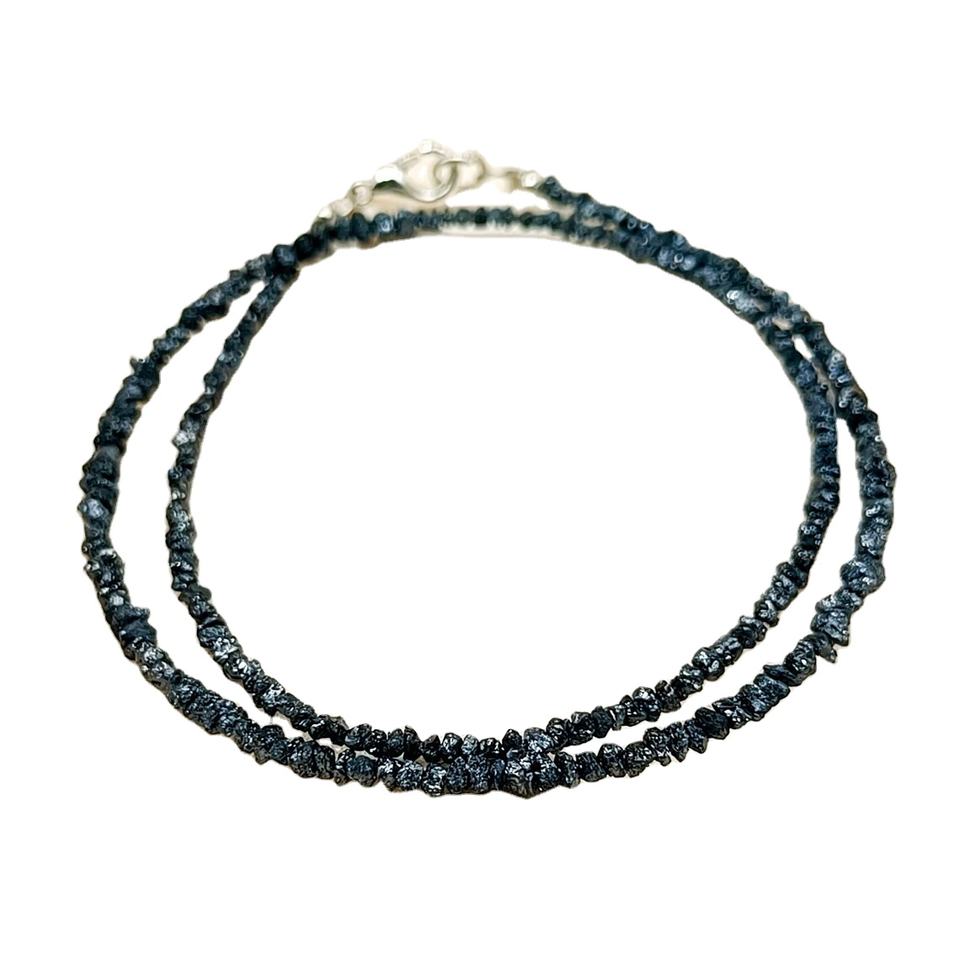 Cuentas de diamantes negros sin cortar en bruto naturales sin conflicto 2,50 MM-3,50 MM collar de cuentas de pepita con cierre 925 Joyería de diamantes