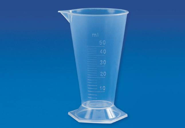 Equipo de laboratorio de polipropileno cónico, Copa cónica con una muesca en la parte superior para facilitar el vertido de líquidos.