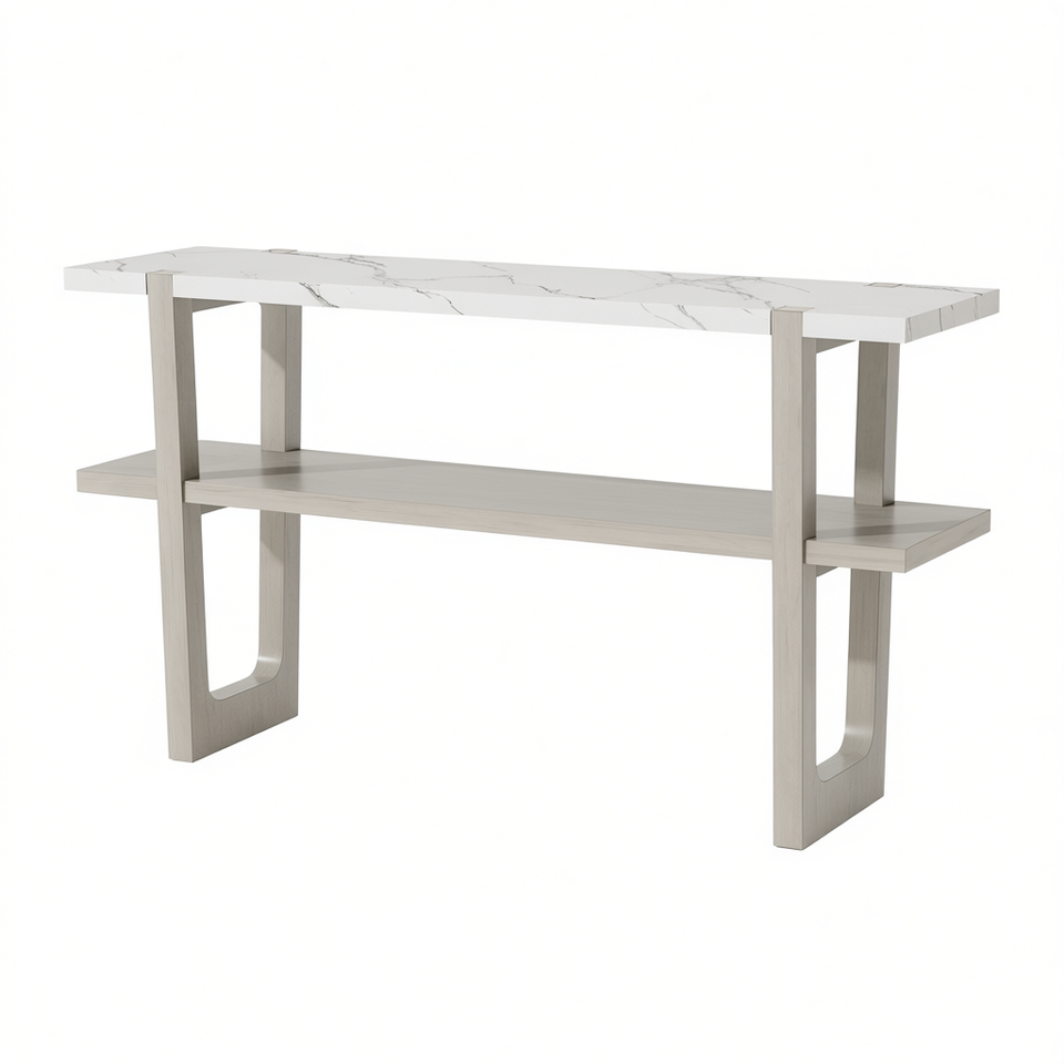 Mesa de Consola con Superficie Efecto Mármol, Almacenamiento para Entrada o Sala de Estar, Mueble Gris Lavado, Madera Maciza MDF
