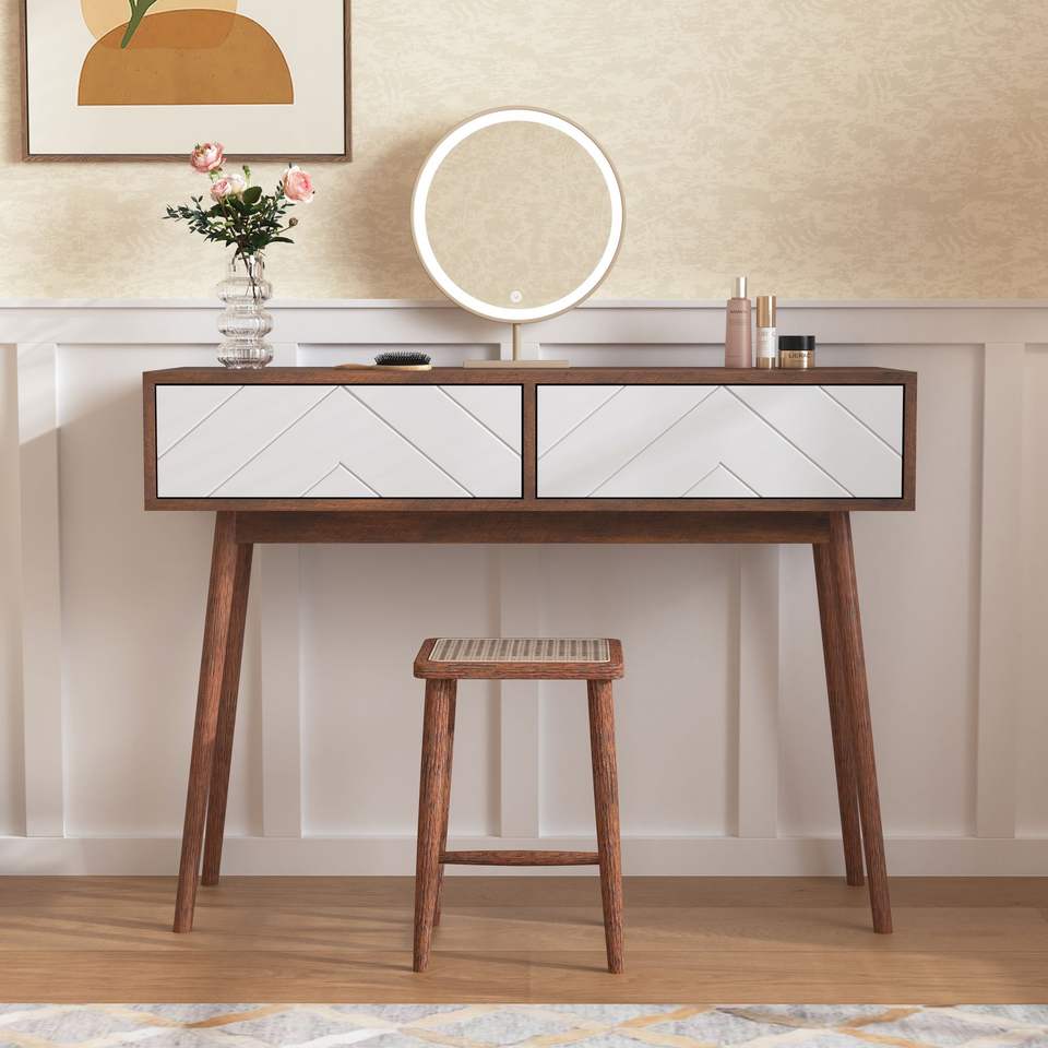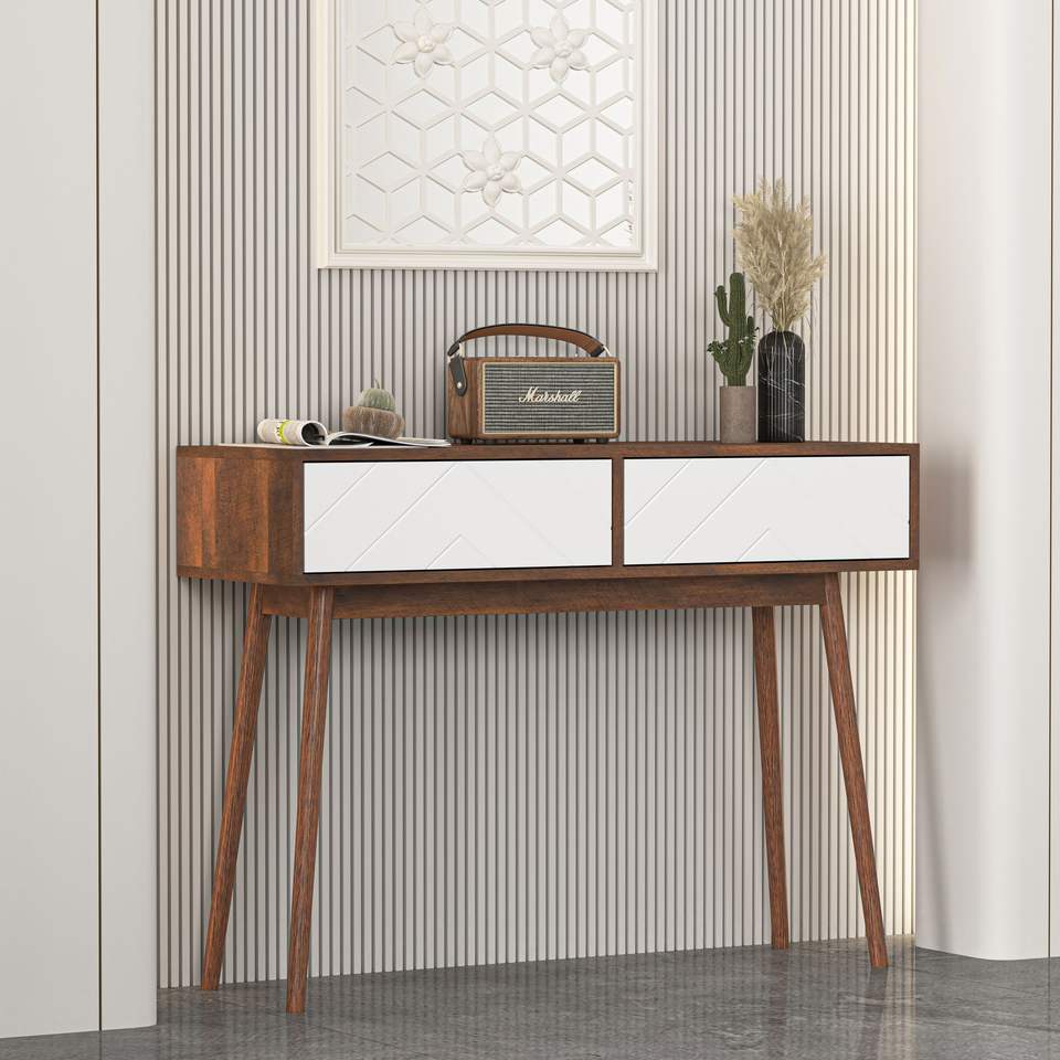 Mesa de Consola con 2 Cajones con Paneles Tallados, Mesa de Entrada con Espacio de Almacenamiento, Patas de Madera para Sofá, Sillón o Pasillo