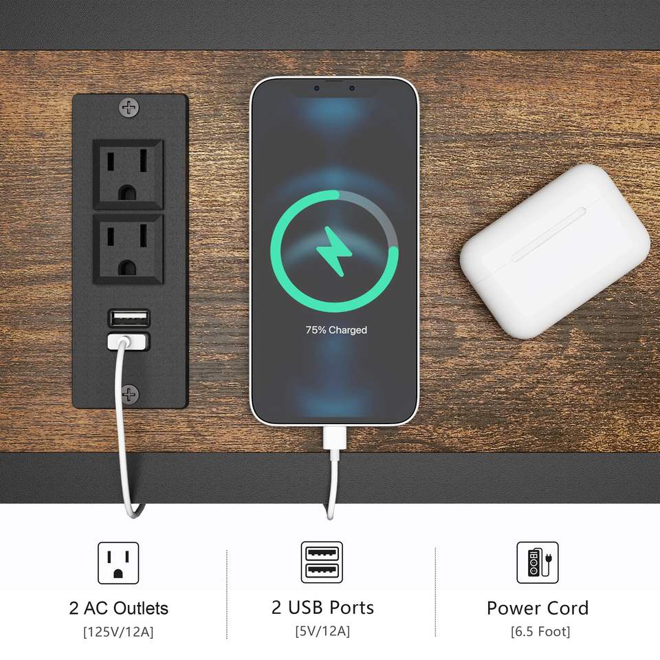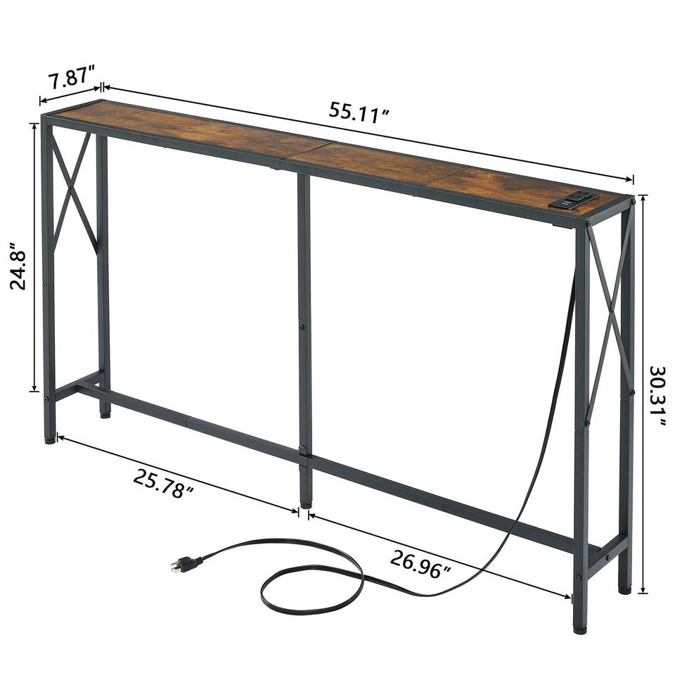Mesa de consola con Oulets y puertos USB Mesa de sofá de 55,1 "Detrás del sofá Soporte Delgado largo industrial