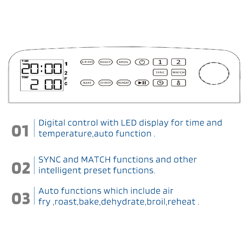 Control de termostato ajustable, Contenedor de aceite desmontable, Pantalla LCD, Superficie de cocción antiadherente, Protección contra sobrecalentamiento, Con luz indicadora