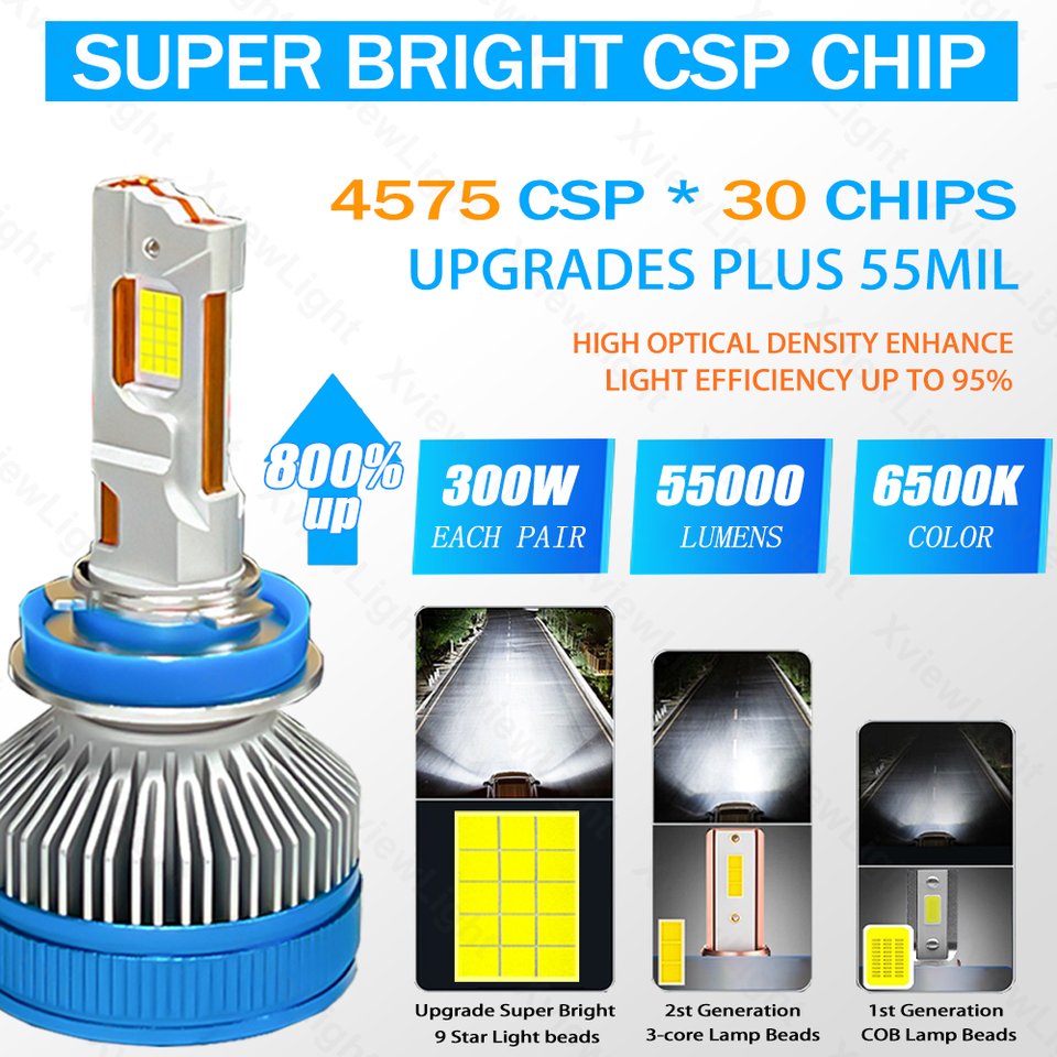 Vida útil:+ 50000 horas más brillante 300W 12V 55000LM Led faro 4575 CSP Chip