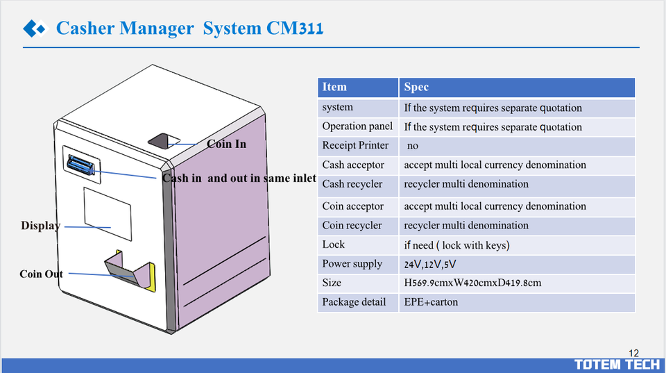 Máquina de pago y recibo sin contacto, sistema de cambio, sistema de pago con cantidad de juego, cajero Pos