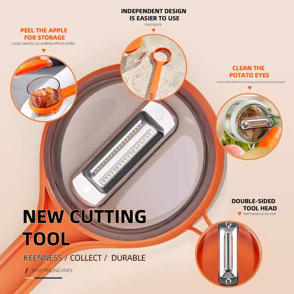 Pelador de Frutas y Verduras Multifuncional de Acero Inoxidable, Pelador Manual de Cocina con Cuchilla Dentada de Acero Inoxidable