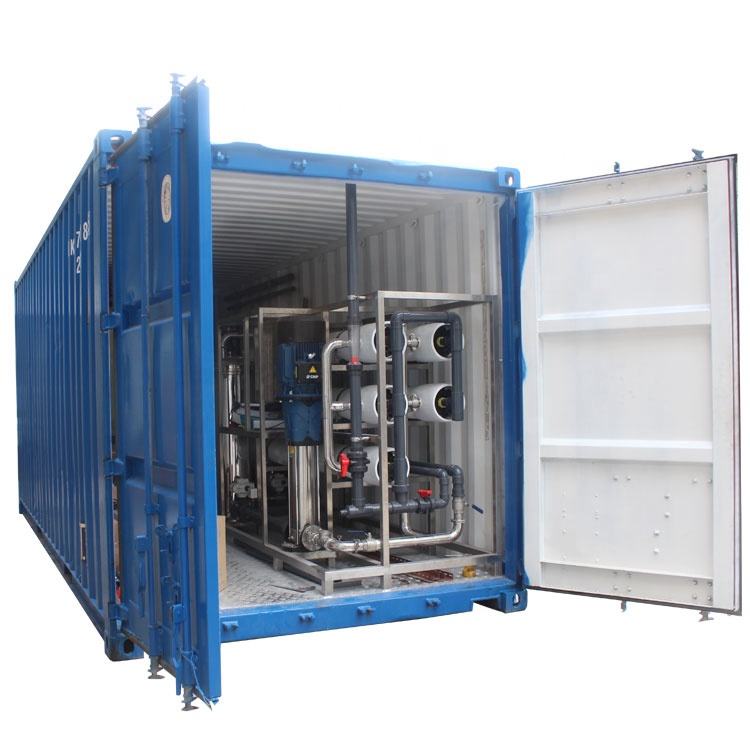 Planta desalinizadora de agua de mar en contenedor; sistema RO en contenedor para desalinización de agua salobre; maquinaria para tratamiento de agua