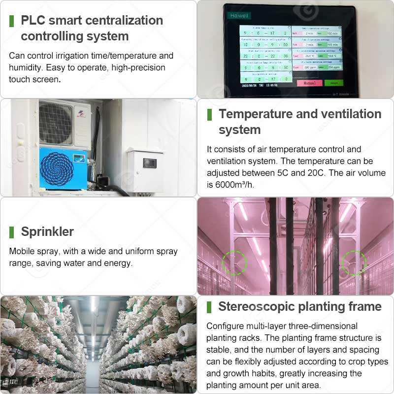 Sistema en Contenedor, Contenedor de 16 Pies, Invernadero Inteligente Biodegradable, Cuarto de Cultivo de Hongos Aeropónico en Granja