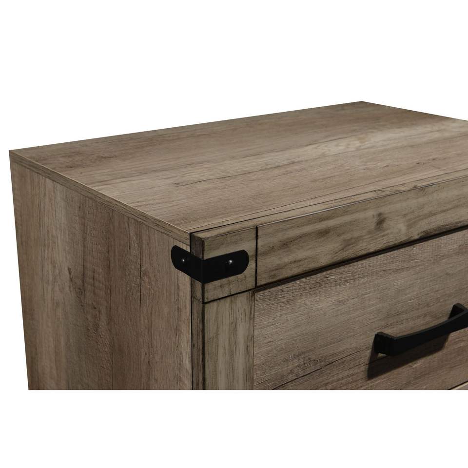 Mesa de Noche Contemporánea de Madera Maciza con Dos Cajones, Acabado en Melamina Marrón, Mesa Auxiliar Alta para Dormitorio, Muebles Rus Contemporáneos
