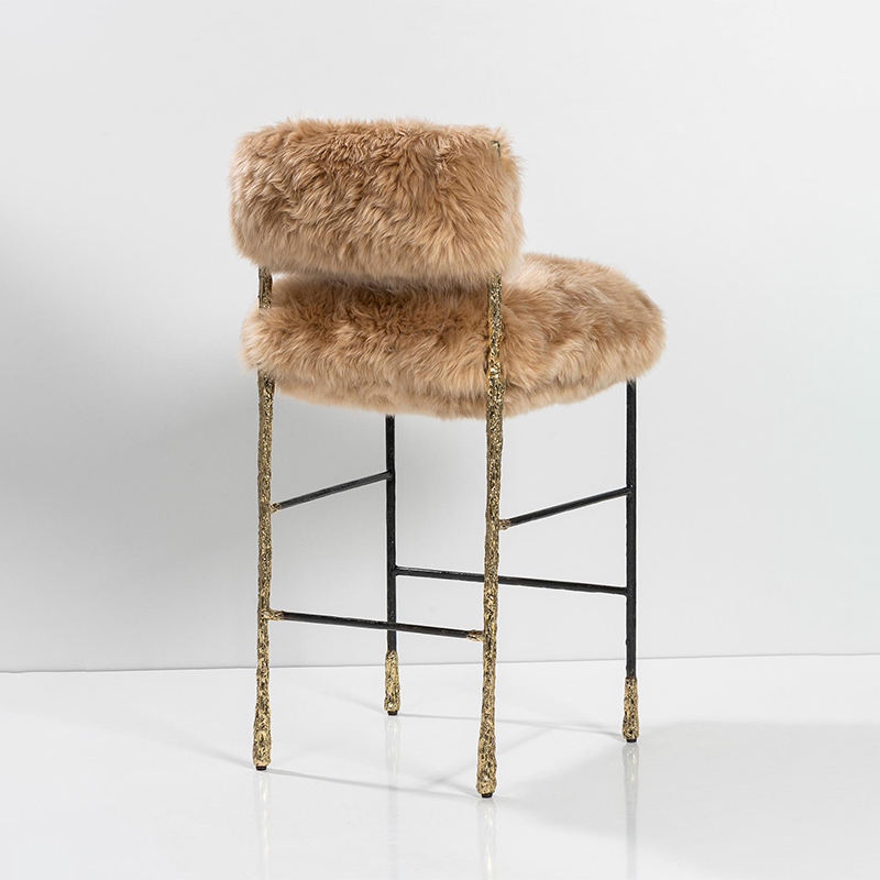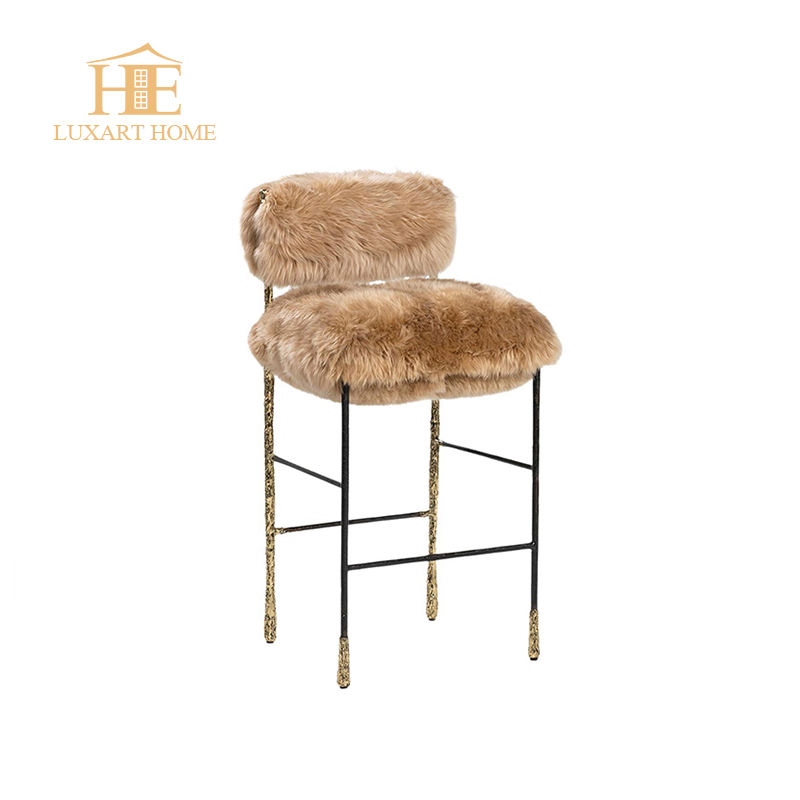Taburete de mostrador de muebles de Arte Contemporáneo, silla alta de latón macizo texturizado y silla de Bar de piel de cordero camello