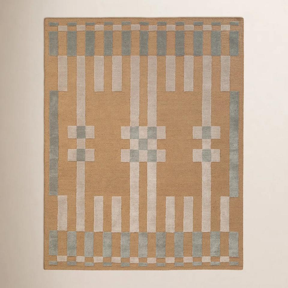 Alfombra Geométrica Contemporánea Beige Hecha a Mano, Alfombra Moderna y Suave para Sala de Estar, Dormitorio, Decorativa, de Diseño, para Cubrir el Suelo del Hogar