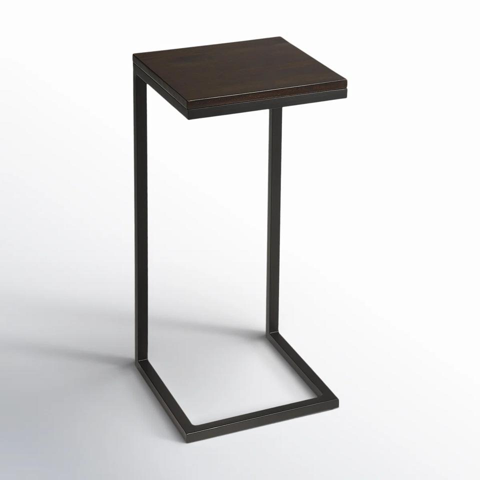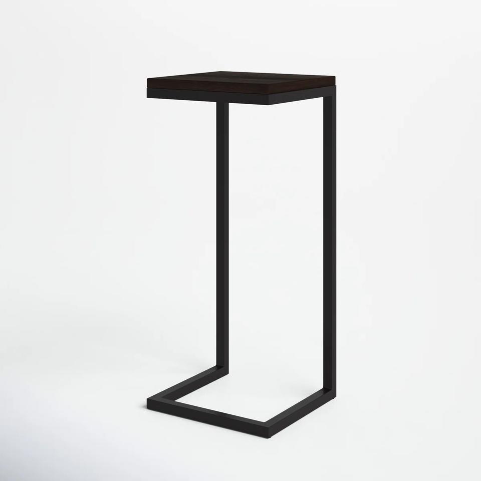 Mesa Auxiliar Contemporánea en Forma de C con Base Cuadrada Compacta y Diseño que Ahorra Espacio, Ideal como Mesa Auxiliar para Sofá o Bar