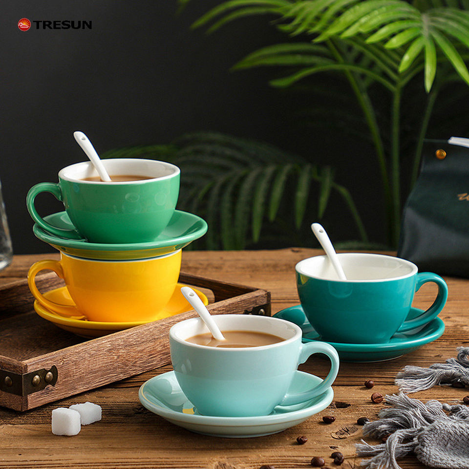 Taza de café de cerámica contemporánea con platillo a juego para oficina y hogar