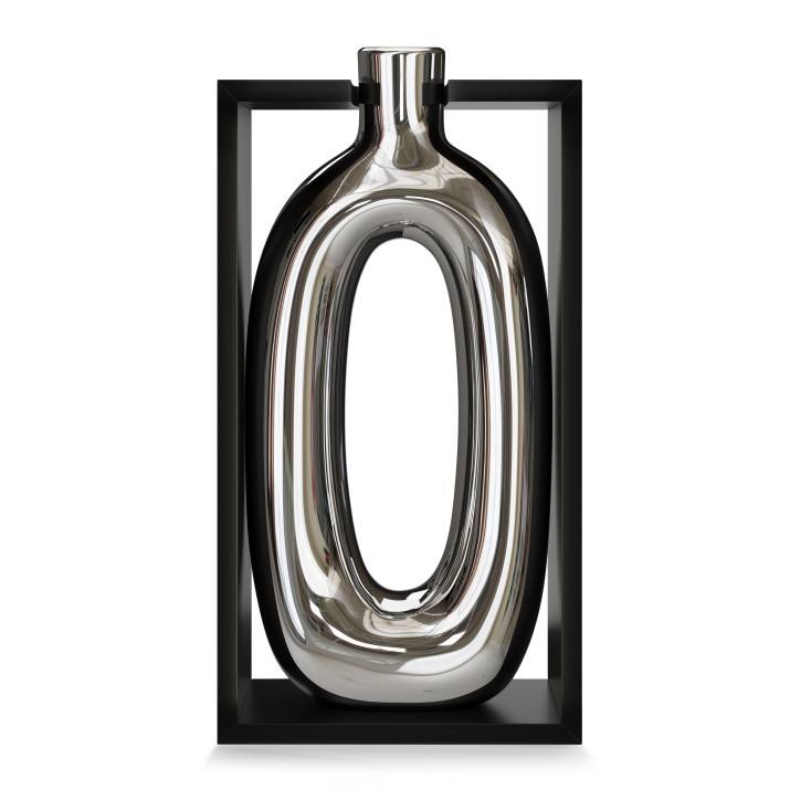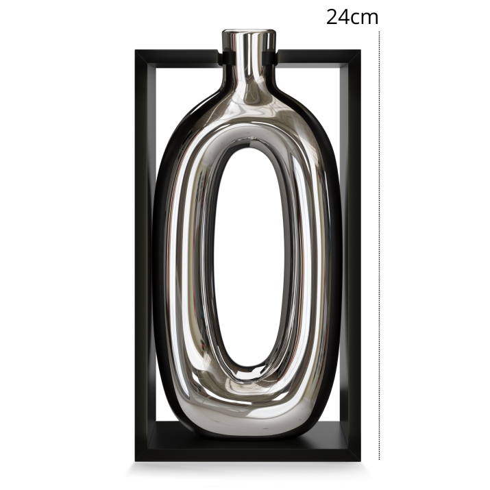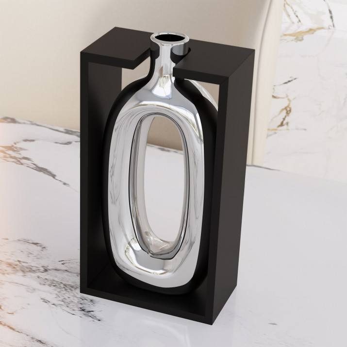Jarrón de Cerámica y Madera Contemporáneo de 24 cm, Plateado, Italia