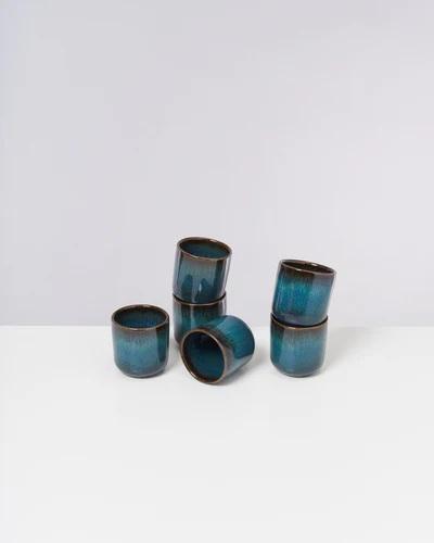 Taza de Té de Cerámica Contemporánea con Esmalte Reactivo Efecto Océano Profundo, Forma Cilíndrica Lisa, Retención de Calor, Diseño Artesanal para la Vida Moderna