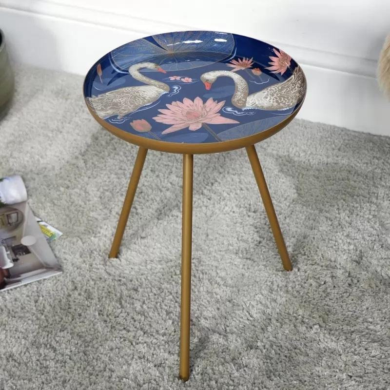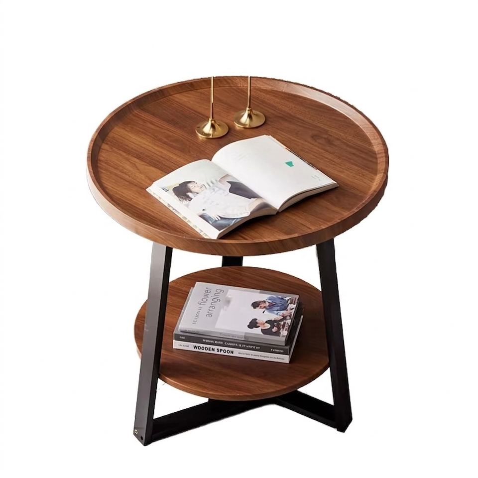 Mesa Auxiliar Circular Contemporánea para Sofá, Mesa de Noche de Doble Nivel con Bandeja, Mesa Auxiliar de Metal y Madera Compuesta para Hogar u Oficina