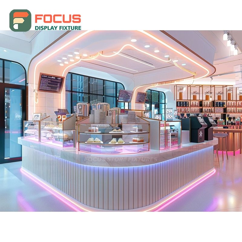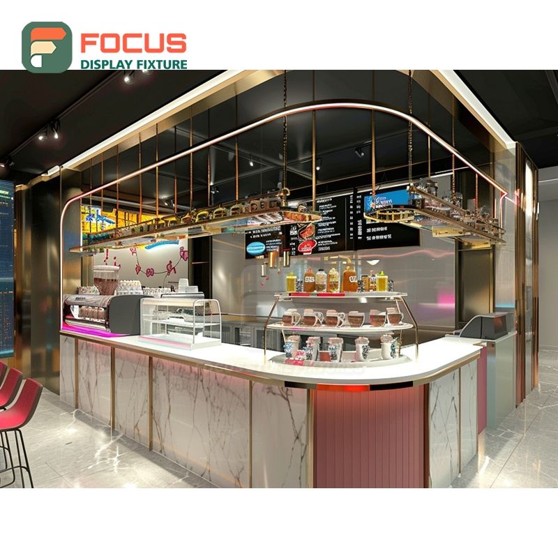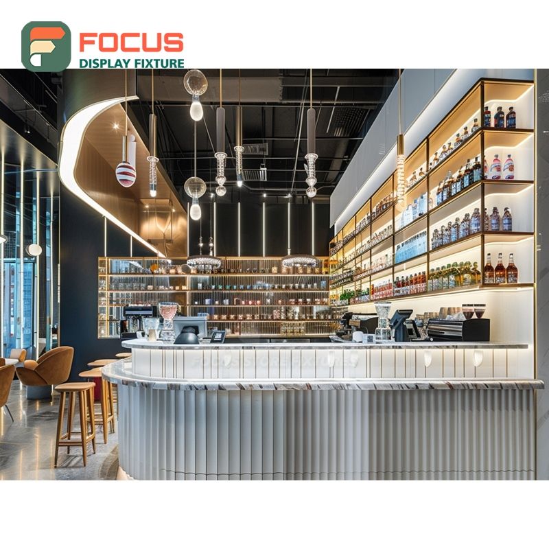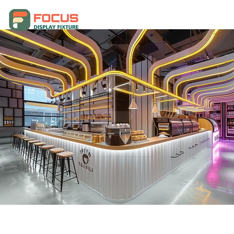 Mostrador de Servicio de Café Contemporáneo con Estante para Condimentos y Panel Blanco para Caja Registradora
