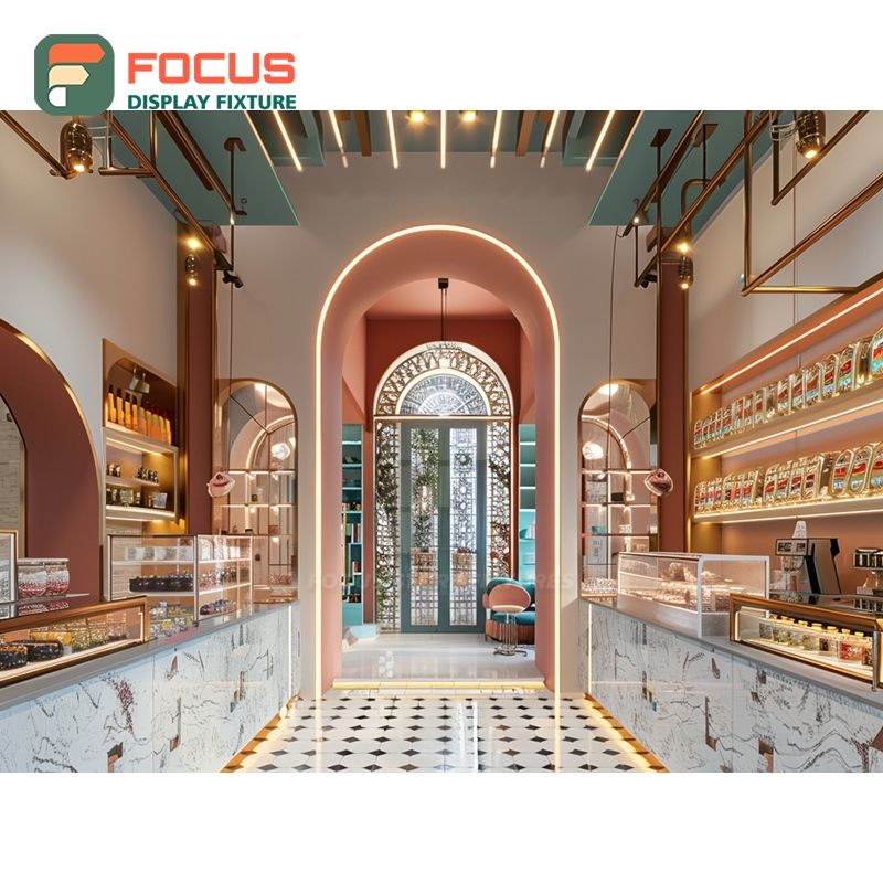 Vitrina Contemporánea para Cafetería, Mueble de Exhibición de Vidrio Templado para Tienda Minorista, Vitrina Comercial para Cafetería