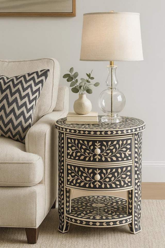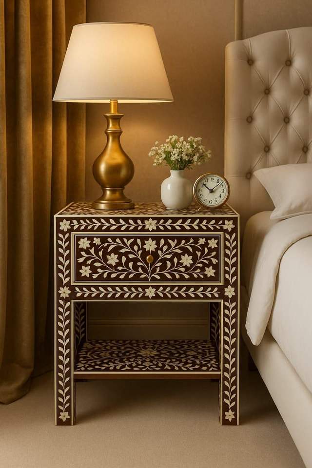 Nombre de los Productos:Mesa Auxiliar con Incrustaciones de Hueso