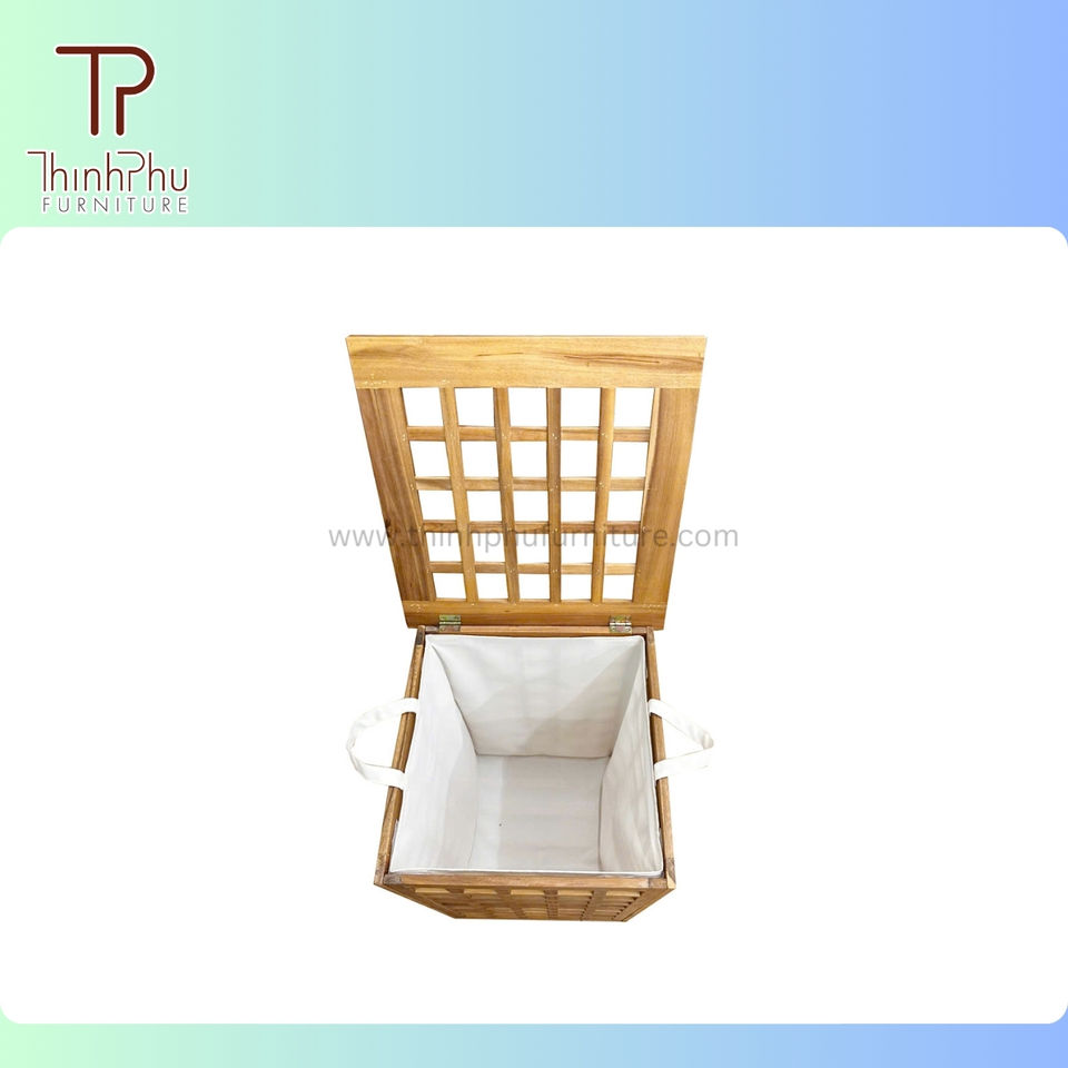 Cesta de lavandería de madera de acacia de diseño contemporáneo para Villa Patio Jardín al aire libre Baño-OEM, ODM