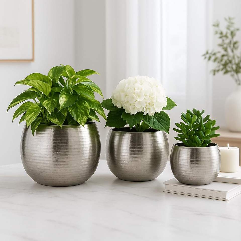 Macetero de Metal de Diseño Contemporáneo, Apto para Jardín, Balcón y Oficina en Interiores Modernos