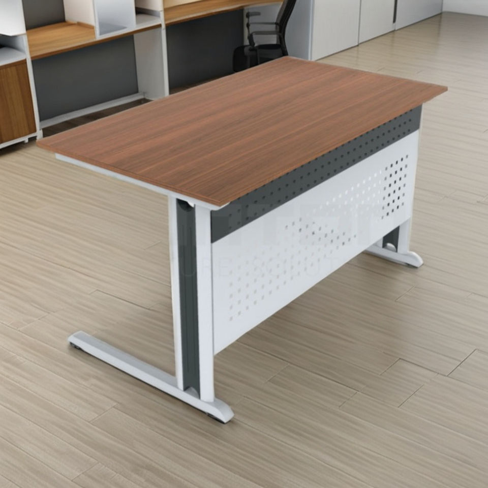 Escritorio de oficina de diseño contemporáneo, marco de acero con recubrimiento en polvo, tapa de madera MDF, mesa de estudio y entrenamiento profesional para larga duración