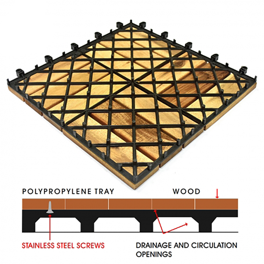 Azulejos de cubierta entrelazados de madera maciza a prueba de agua de diseño contemporáneo Fácil Instalación en interiores/exteriores Característica antideslizante para