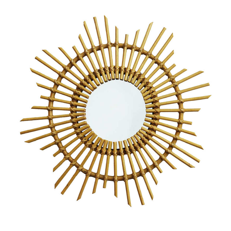 Contemporáneo Floral moderno forma de flor hecho a mano ecológico ratán enmarcado espejos de pared Linda decoración de pared minimalista