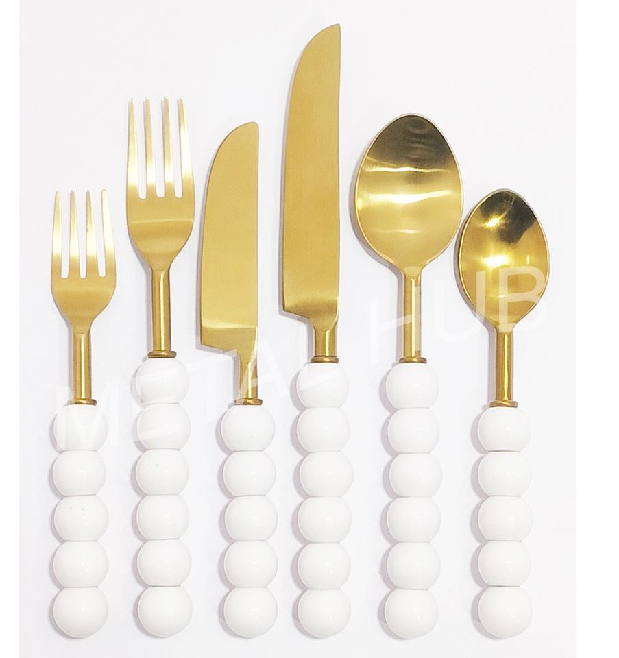 Juego de cubiertos de oro mate con mango de burbuja blanca