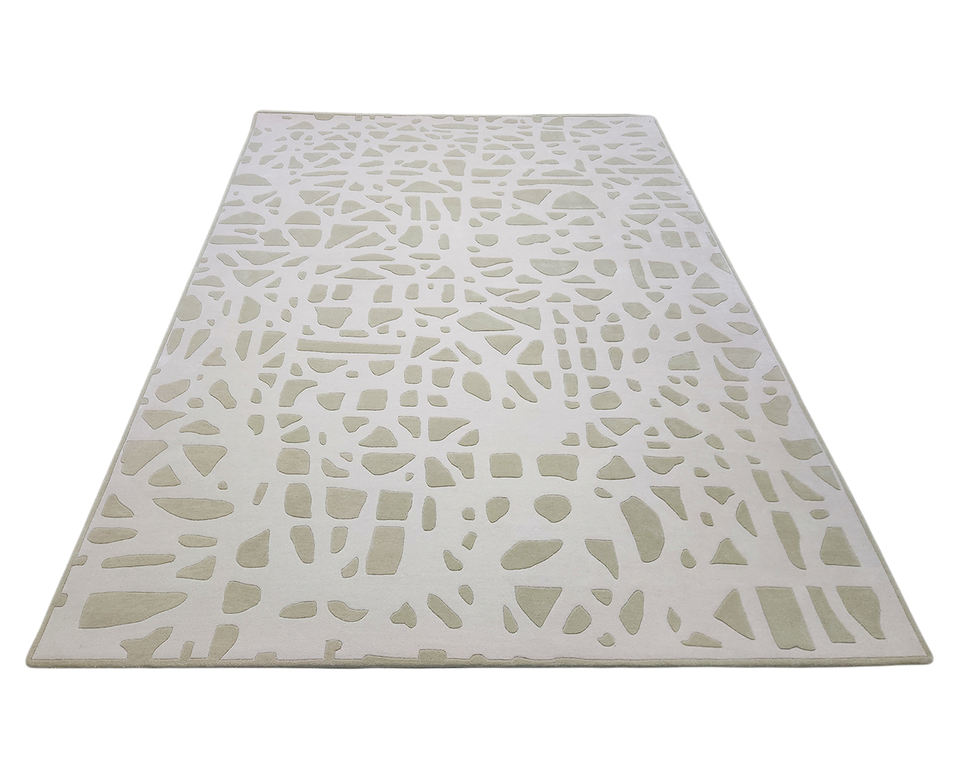 Alfombra Contemporánea de Alta Calidad Hecha a Mano en Lana, Color Beige y Verde, Alfombra Moderna para el Hogar, Apta para Mascotas, Antideslizante, Regalo de Navidad