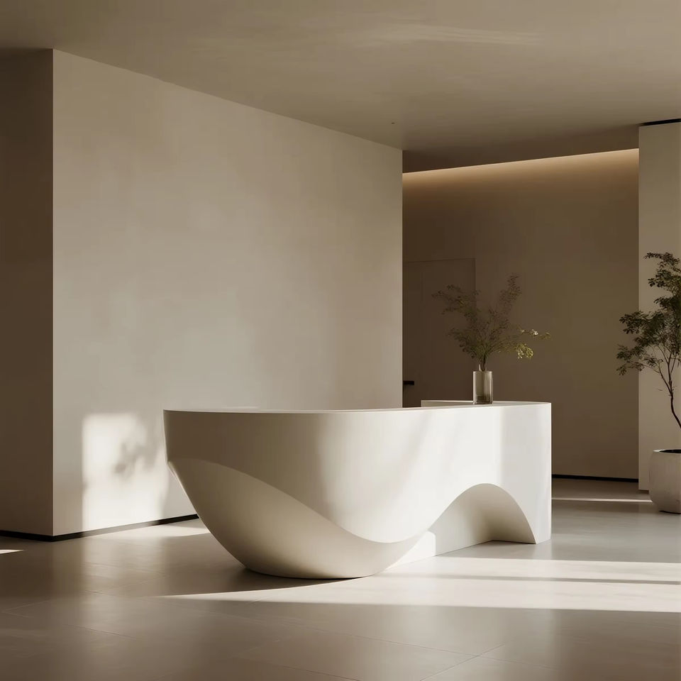 Mostrador de Recepción Curvo Blanco Minimalista Contemporáneo para Oficinas Modernas