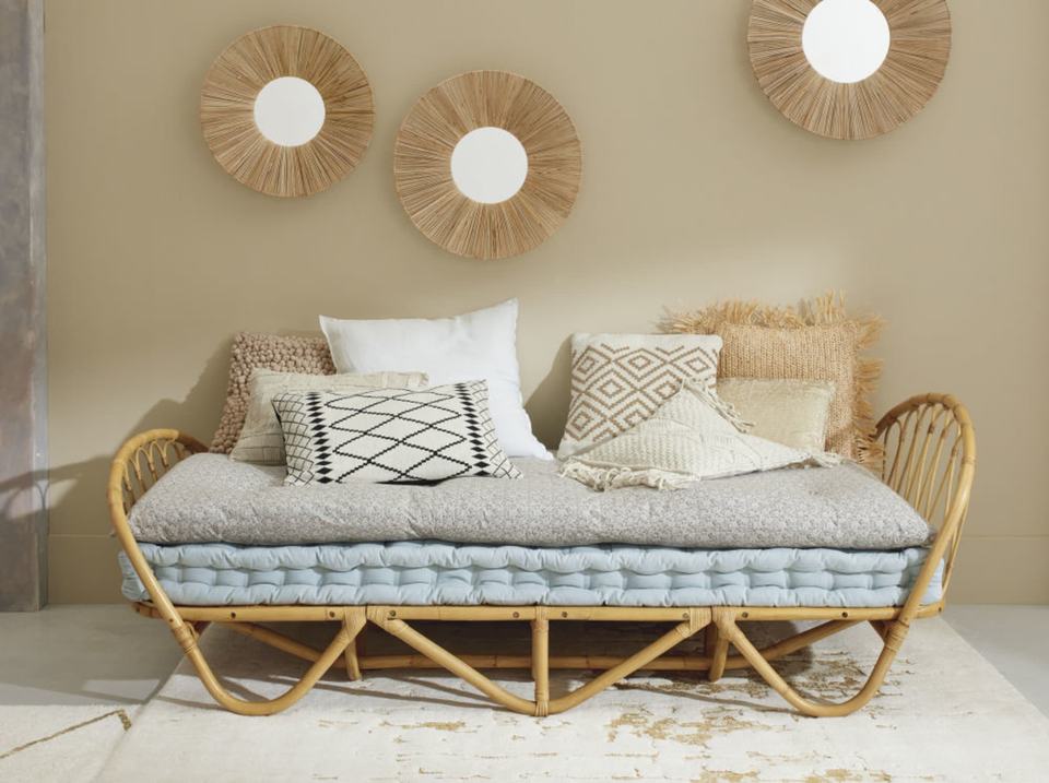 Espejo de pared de Sol de ratán redondo minimalista contemporáneo con marco vintage y color personalizado para Baño