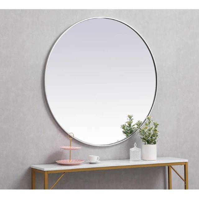 Espejo de pared con marco de Metal plateado contemporáneo, acento decorativo moderno elegante para el diámetro de la sala de estar, eternidad