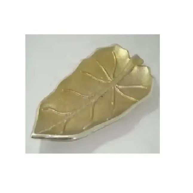 Bandeja de Metal moderna contemporánea Plato de hoja de aluminio dorado Bandeja decorativa de Navidad única Técnicas de artesanía india