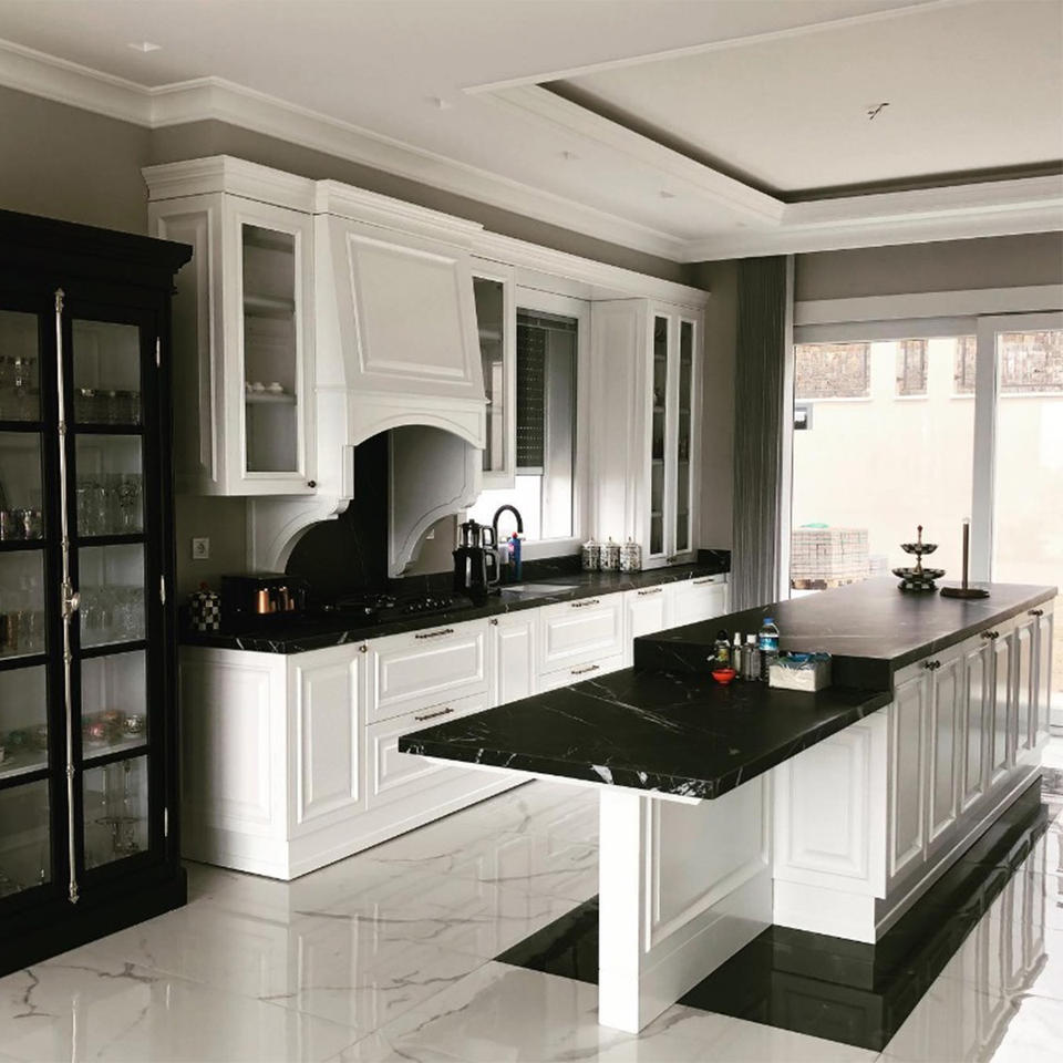 Juego de Muebles de Cocina Modulares Contemporáneos de Tablero de Partículas con Encimera de Mármol, Muebles de Cocina de Lujo para Proyectos de Interiores del Hogar