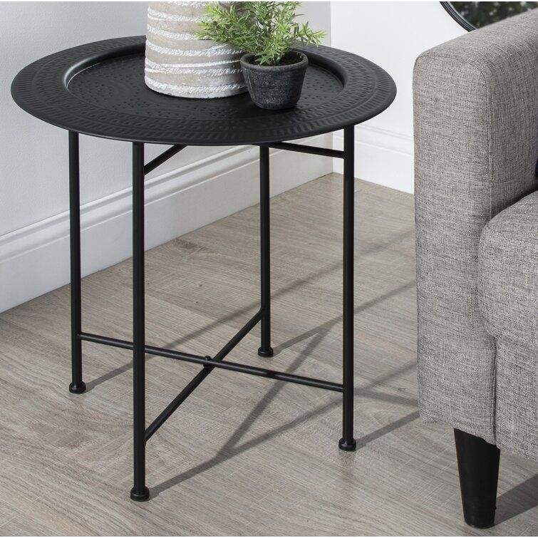 Conjunto de mesas auxiliares metálicas contemporáneas para ahorrar espacio en la sala de estar y una disposición moderna de muebles decorativos.